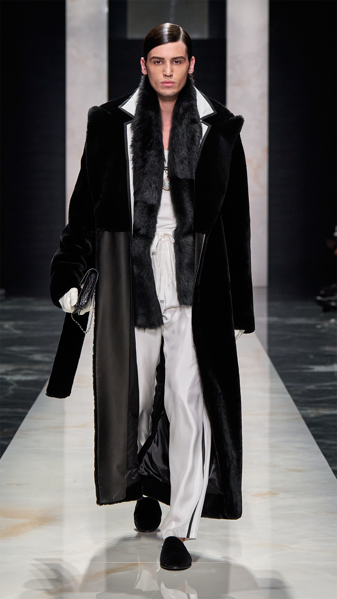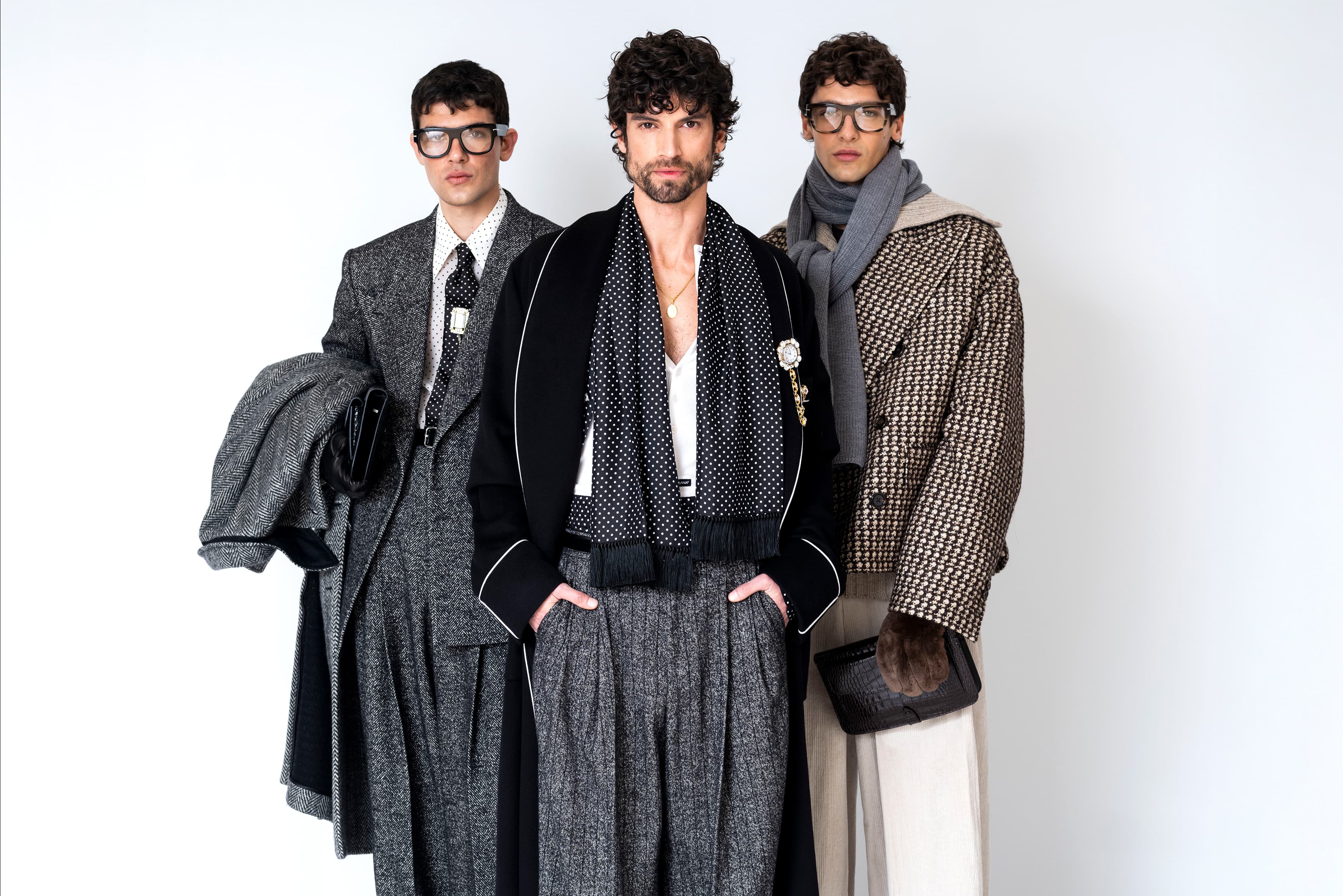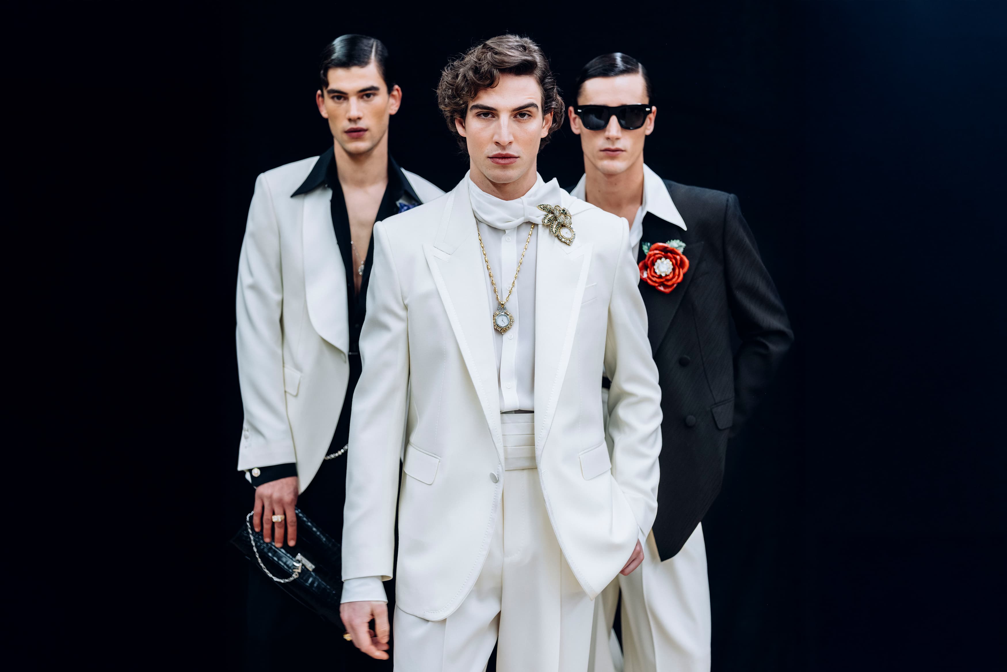 自 1990 年代至今,这奠定一贯品牌风格的美学准则在此卓然跃升瞩目焦点,重拾极具辨识度的男性风范。本季 Dolce&Gabbana 大秀的模特阵容卓然彰示男士魅力的真切表达,此外亦体现于各件设计臻作之中,玩转精选造型之间的风格对比意象。