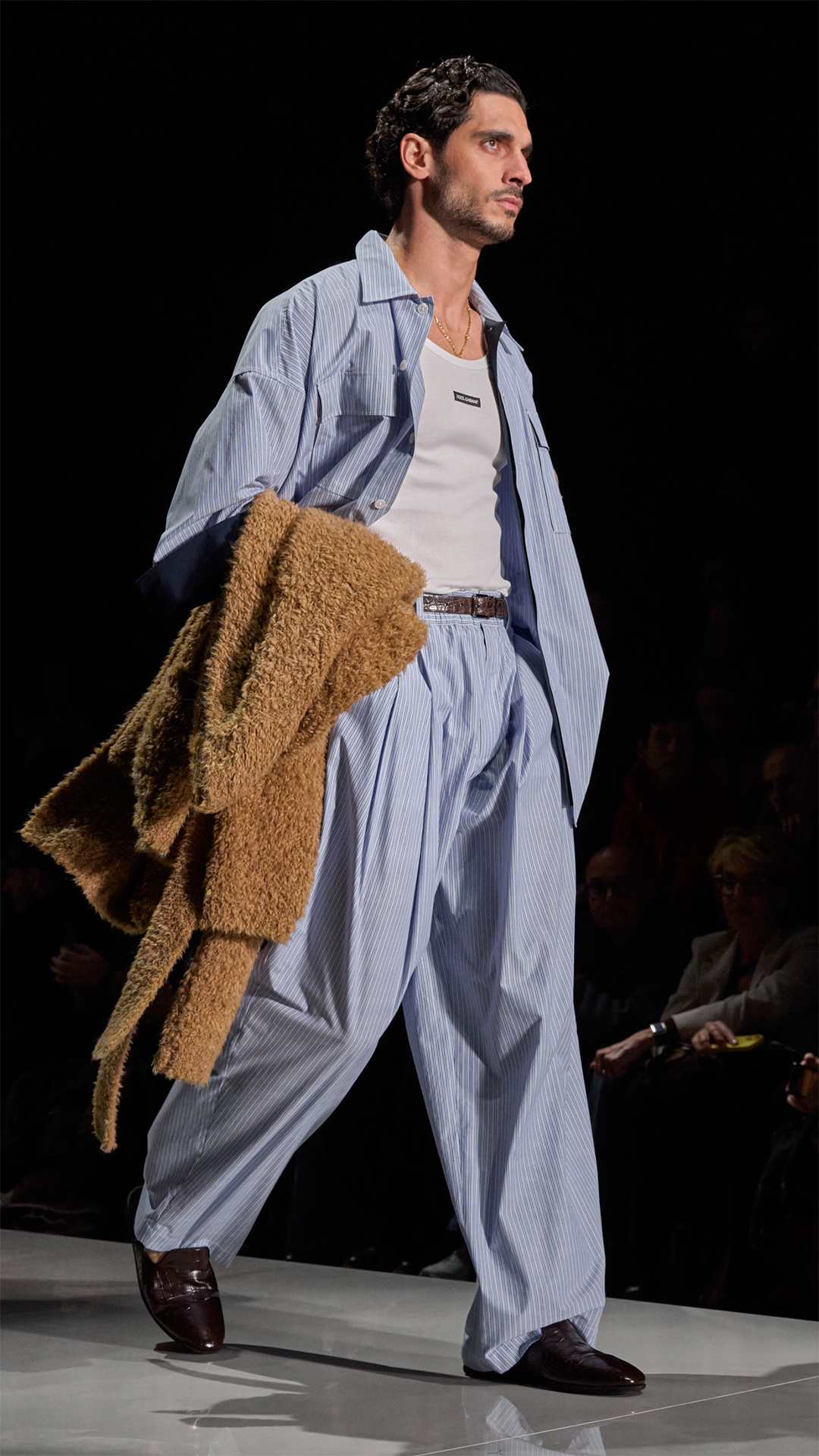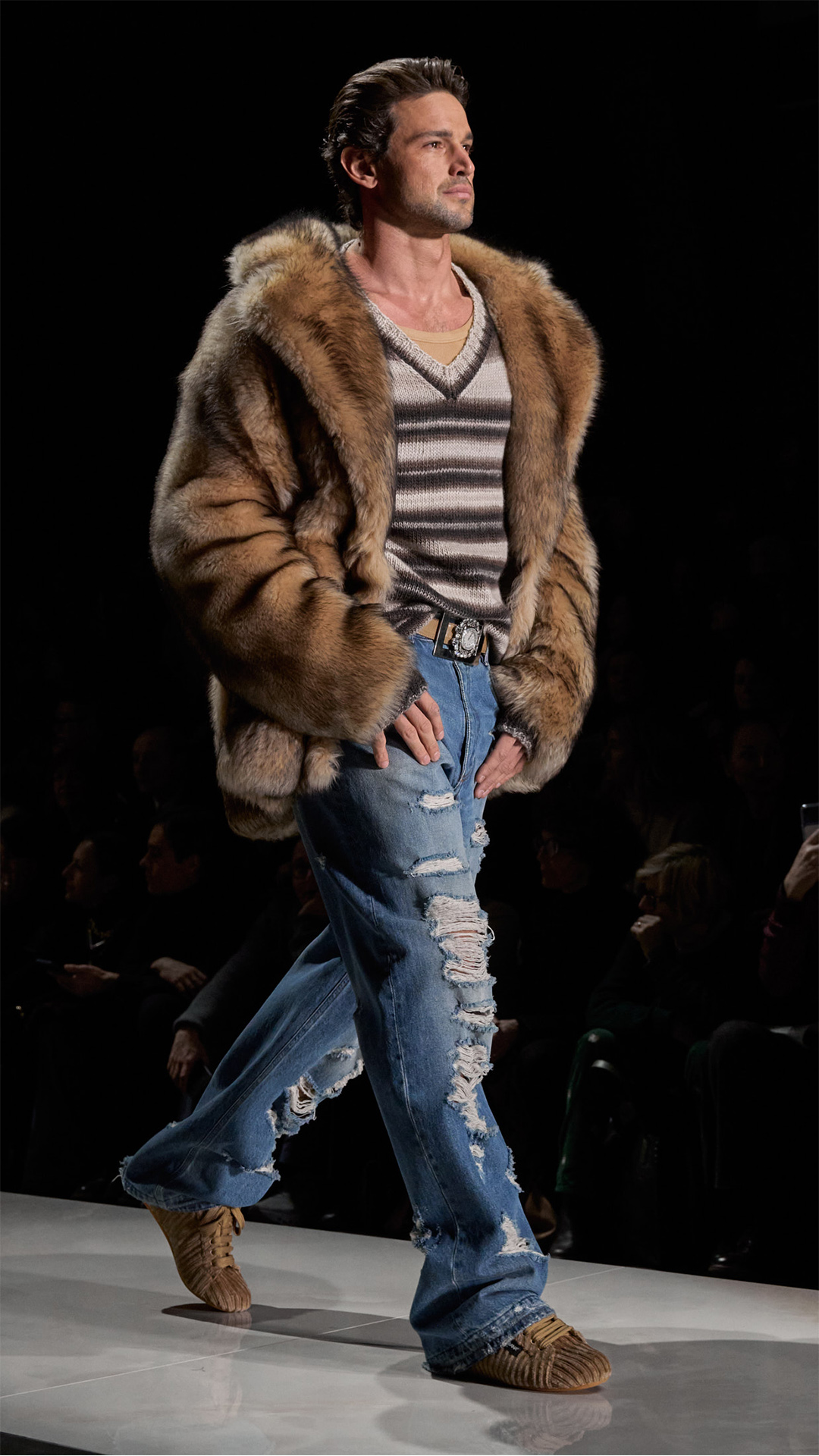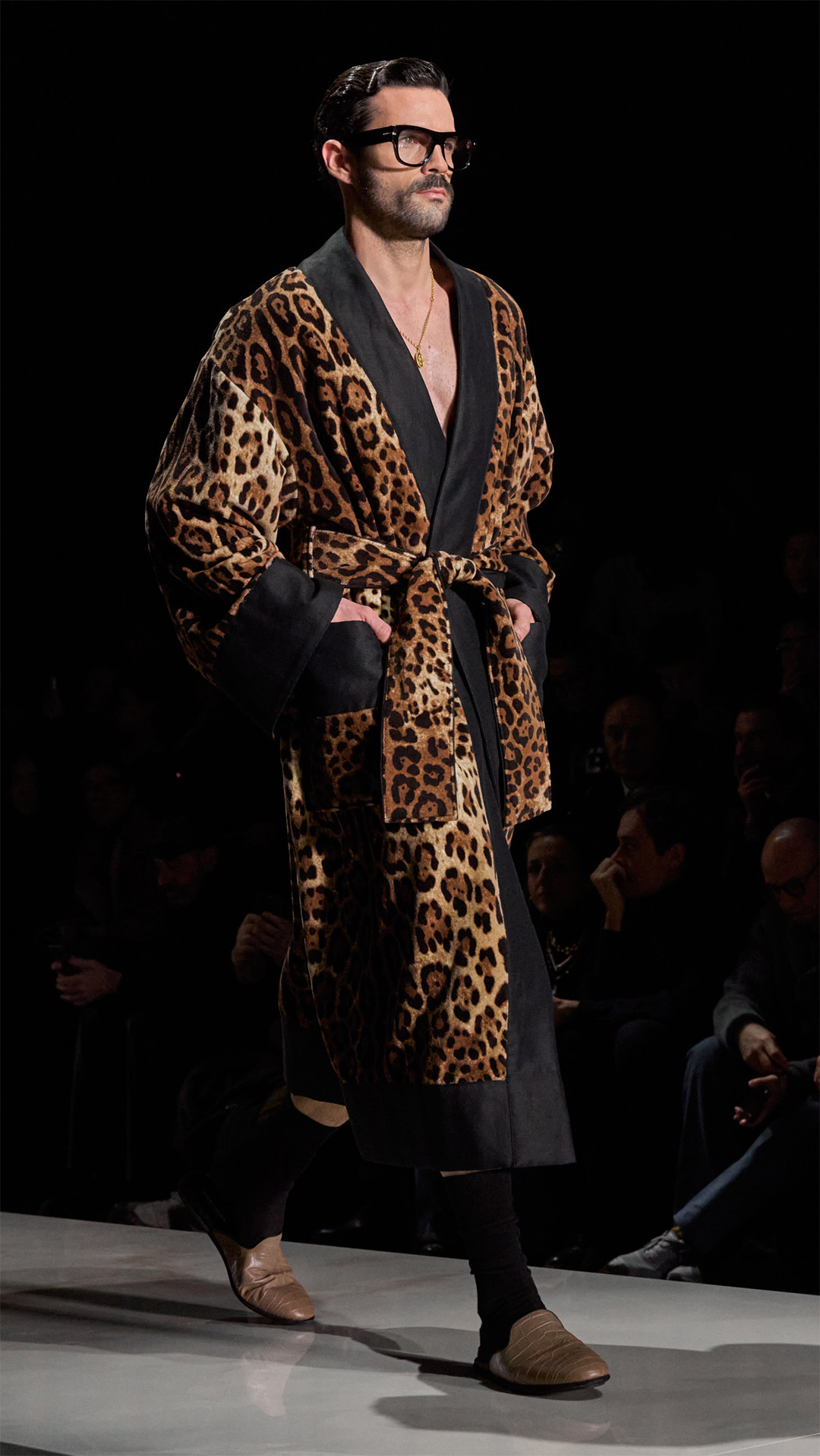 自 1990 年代至今,这奠定一贯品牌风格的美学准则在此卓然跃升瞩目焦点,重拾极具辨识度的男性风范。本季 Dolce&Gabbana 大秀的模特阵容卓然彰示男士魅力的真切表达,此外亦体现于各件设计臻作之中,玩转精选造型之间的风格对比意象。