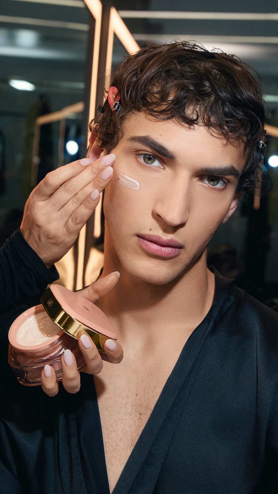 本季彩妆造型耀映个体审美,映照时尚大秀的深刻灵魂。精心研制的焕亮精华与保湿护理精妙融萃,打造出绽放光彩的均匀肤色;并根据每位模特的形象特征打造专门发型,有意呈现出多元丰富的风格美学。